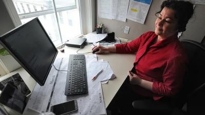 A Mass211 information and referral specialist is shown speaking with a client in this 2020 file photo. Daily News And Wicked Local Staff File Photo / Art Illman